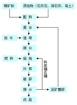 球团生产般流程:原料准备→配料→混匀(干燥)佰利乐→造球→布料→焙烧→冷却→成品输出;球团焙烧过程:干燥→预热→焙烧→均热→冷却。