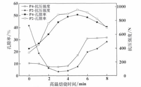 如图2所示,含碳球团的孔隙率随焙烧时间延长先升高后降低,结合对氧化球团还原过程强度的变化研究 ,含碳球团焙烧初期强度的急速降低是由球团内部孔隙率的增大引起的。