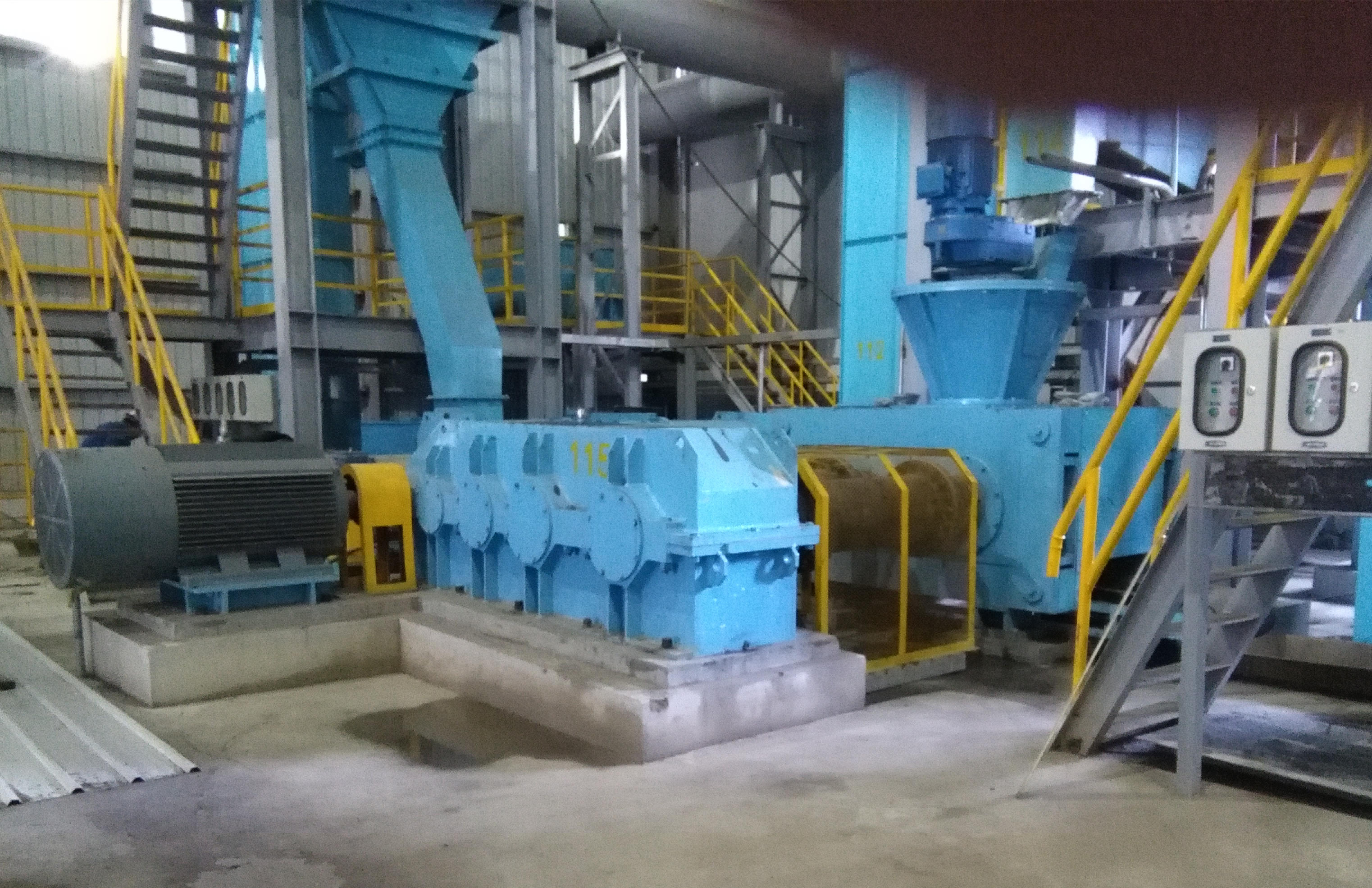 该设备应安装在水平的混凝土基础上,用地脚螺栓固定。安装时应注意主机体与水平的垂直。安装后检查各部位螺栓有无松动及主机仓门是否紧固。生产前,调整压球机的2个压辊纵向位置,使压辊上的凹面中心相对,这样才能使压出的石灰球呈正圆形,调整压球机2个压辊的上下间距,可使石灰球的大小改变。